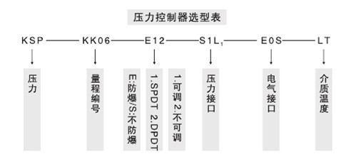 KSP壓力控制器:采用膜片式、波紋管、活塞及彈簧管壓元件,普通型可用于對感壓元件無腐蝕作用的氣體、液體或蒸汽等介質的場所實現壓力的自動控制。防爆型產品防爆標志為ExedllCT6,可用于對感壓元件無腐蝕作用的氣體、液體或蒸汽等介質的llA、llB、llC類T1~T6組爆炸性氣體混合物場所實現壓力的自動控制。控制器的設定值調節范圍為-0.1~40MPa。工作壓力為量程的1.5倍。