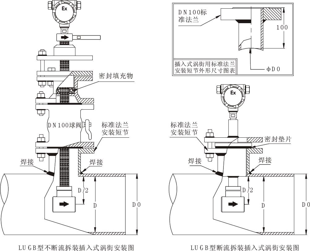 LUCB型插入式渦街流量計安裝圖